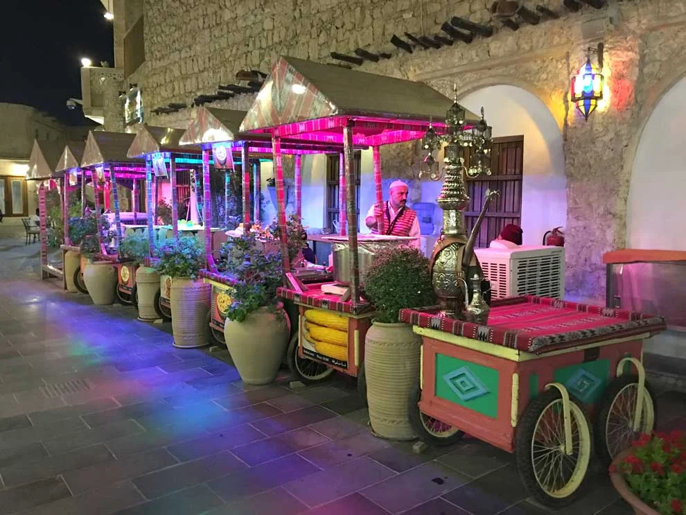 One of the main attractions in Doha is an outdoor shopping center called the Souq-Waqif (translated = standing market). After checking into one of the fancy hotels, we only had a few hours so we headed to Souq.