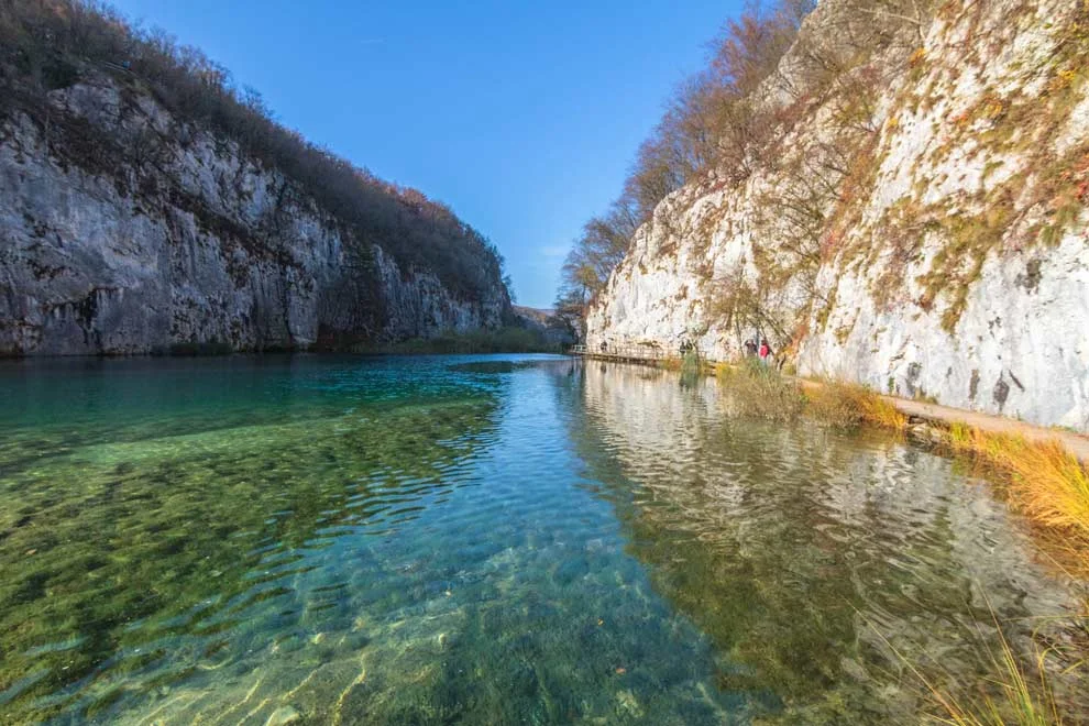Plitvice Lakes National Park is pretty big. It is a series of 16 lakes that are connected by a wooden hiking trail and a series of waterfalls. It’s not the type of thing where you hike for a while to get to the ONE waterfall. There are several different hiking trails with MANY small waterfalls and lakes. I chose the H route, which takes ~4-6 hours to get through. This is the start of the H route---as you can see the lakes are crystal clear!