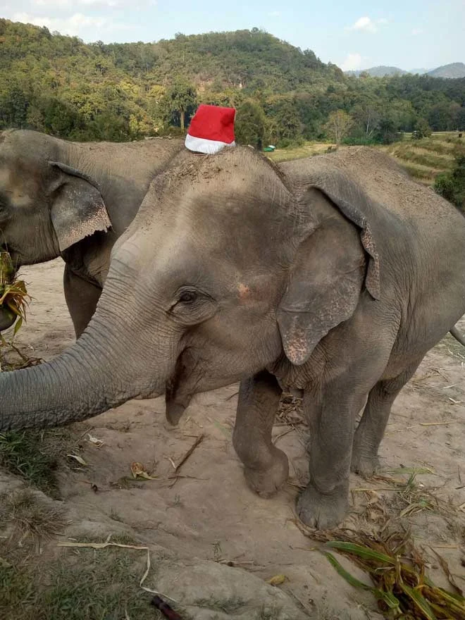 This sanctuary buys elephants from tour companies and gives them a better life! And they bring in tourists to play with them, feed them and bathe them. These gentle giants are really really kind, and they too, love Christmas.