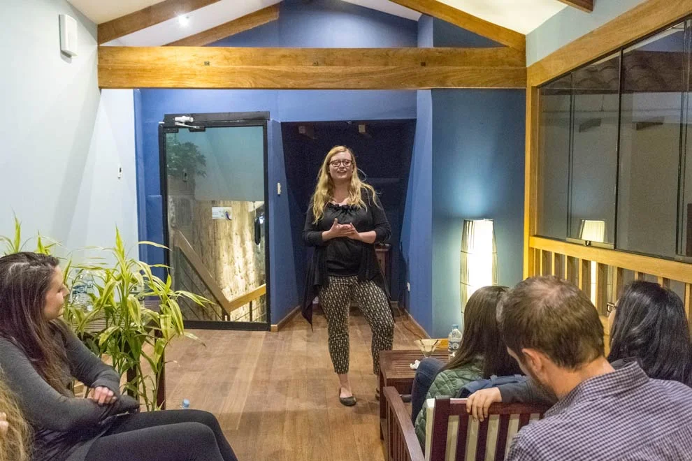 Last Wednesday, I hosted a sold-out speaking workshop in Cusco for my fellow Remotes. My hotel had a sweet space called the ‘Sun Room’ which felt perfectly Zen for practicing public speaking.