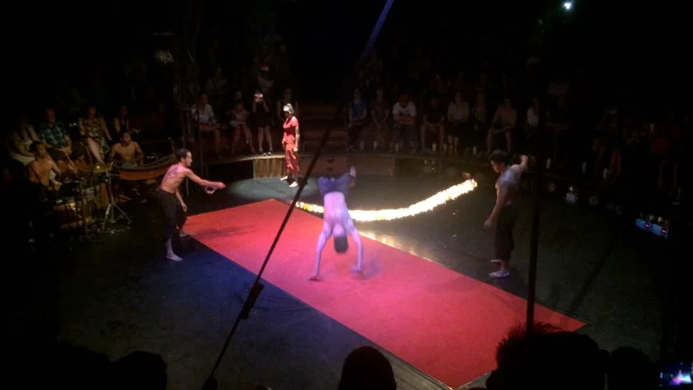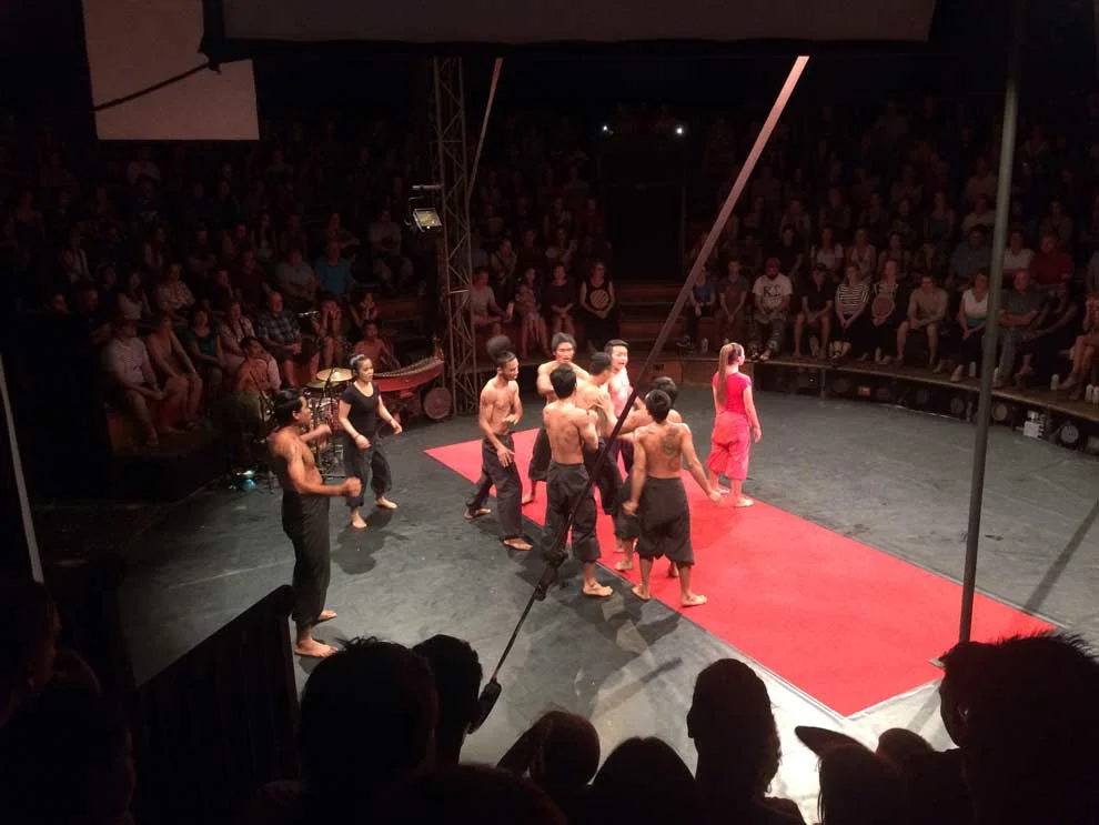 Phare was recommended by fellow Remote Translator.Liz who had visited earlier in the month. I went with a German friend (Carolin) who I met on the bus from Phnom Penh to Siam Reap. The only seats left were general admission and we were in the far back corner. But, it was a tiny tent venue and it didn’t matter. The performance was so powerful, there were no bad seats in the house!