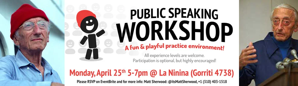 Matt Sherwood is the founder of Communication Community, a free public speaking workshop in the Los Angeles area. The next Communication Community workshop is Wednesday, October 21st at 7pm in Culver City! Check us out on Meetup and Facebook: http://www.meetup.com/Communication-Community https://www.facebook.com/CommunicationCommunity