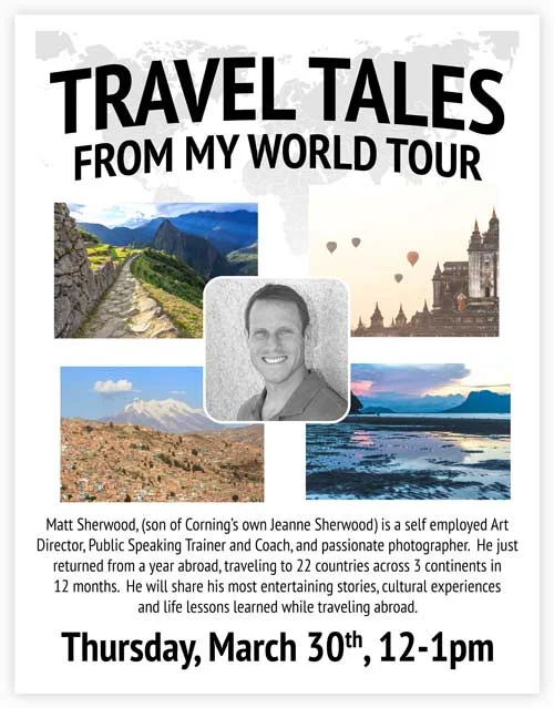 I really enjoyed talking about my travel experiences and relating some of the more entertaining tales. I hope to do a similar speech in the future at a different venue. And, I know I will be sharing stories from my travels until the day I die!